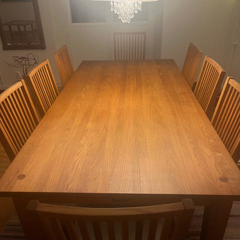 Matbord med stolar skänkes