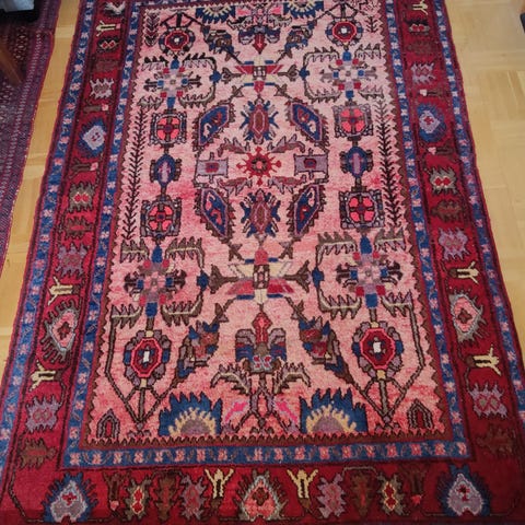 IKEA matta i röd färg med dekorativt mönster. Passar för användning som golvbeläggning i olika rum och miljöer.iran matta