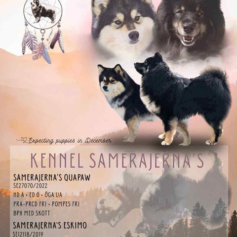 Har 1 finsk lapphundsvalp som letar sitt hem. En hane. Han är en väldigt social valp som gärna undersöker saker. Han har båda testiklarna nere. Han är efter friska sunda föräldrar.