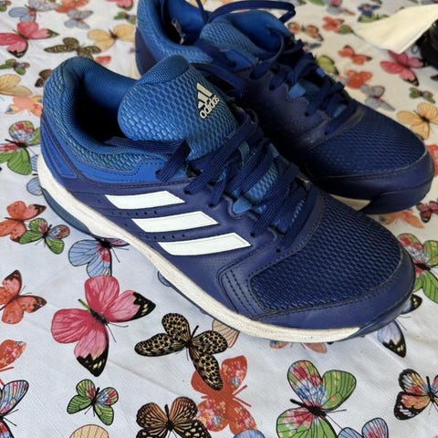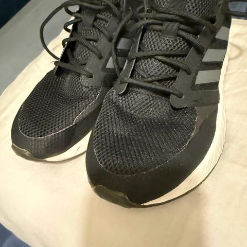 Adidas Finskor i storlek 43 med svart färg. Skorna är designade för vardagligt bruk och har en mesh-överdel för andningsförmåga.