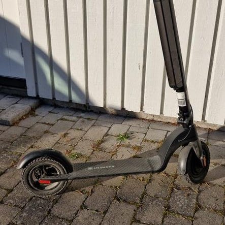 E-Wheels E2S V2 LR elscooter i svart färg. Utrustad med display för hastighets- och batteriövervakning. Fram- och bakljus för ökad synlighet vid körning i mörker. Laddare fås med. Topphastighet 20 km