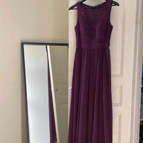 Mycket fin balklänning i bra kvalitet. Lila med glittrig tyll, knäppning på sidan. Strl 38 men passar en 36-a. Använd en gång. Nypris 2000kr