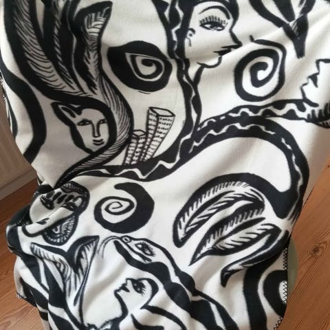 Tidstrand filt röd med mönster