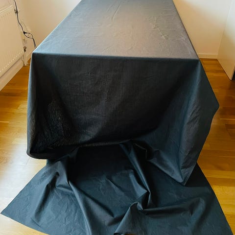 Stl. 140 x 240 cm. 55 % polyester och 45 % bomull.