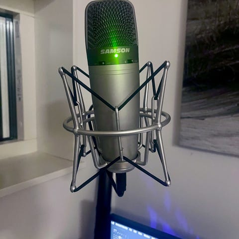 Jag säljer för billigt eftersom att jag inte har en lång usb c sladd som fungerar till denna längre, en 2 meter ska räcka. Och sedan att en skruv för att mikrofonen inte finns kvar, men ett smart hemmabygge med mutter och skruv kommer funka väldigt bra!
