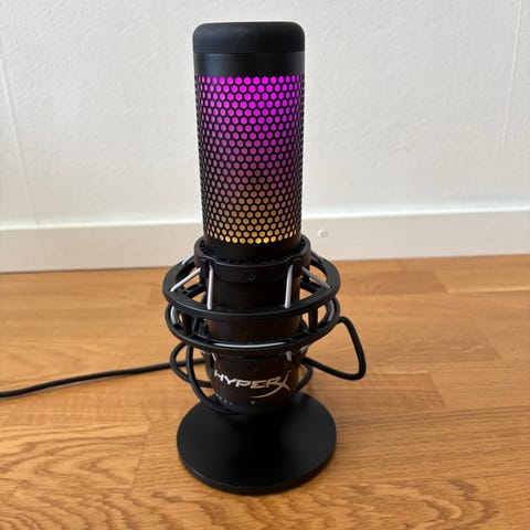 Jag säljer min Hyper X Quadcast vid mycket bra ljud, anledning är för att mina hörlurar har en mick jag kan använda istället, detta är ett mycket bra val för gamers som vill ha den krispiga ljudkvalitén eller till och med producenter (för sångare) . Denna kostade mig 1600kr sprillans och shock mounten 300kr,