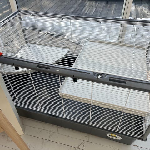 Smådjursbur - Hamster Plaza Knock Down 100x50x50cm Grå. Springhjul ingår. Använd endast en vecka. Säljs på grund av eget önskemål om annan burstorlek.