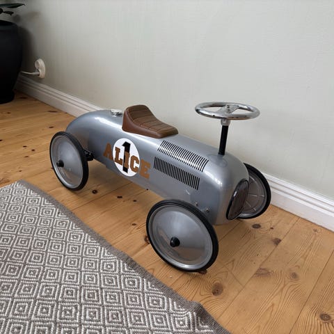 Pedalbil i grått utförande. Rysk från ca 1950. . Produkten är avsedd för barn och drivs med trampmekanism. Samlarobjekt