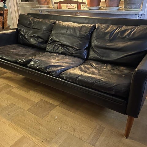 Svart skinnsoffa 3 sits Bejra Möbler AB Tibro, Carl Erik Johansson
