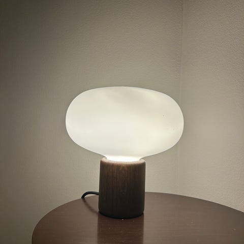 Kizu bordslampa large 45 cm från New Works är formgiven av Lars Tornøe och hyllar enkel, organisk design. Lampan består av två vackra former som tillsammans skapar ett luftigt och nästan tyngdlöst intryck. Tillverkad av naturmaterial ger den ett varmt, naturligt uttryck och ett behagligt ljus för läsning eller stämningsbelysning. En elegant och stillsam pjäs som lyfter rummet!
