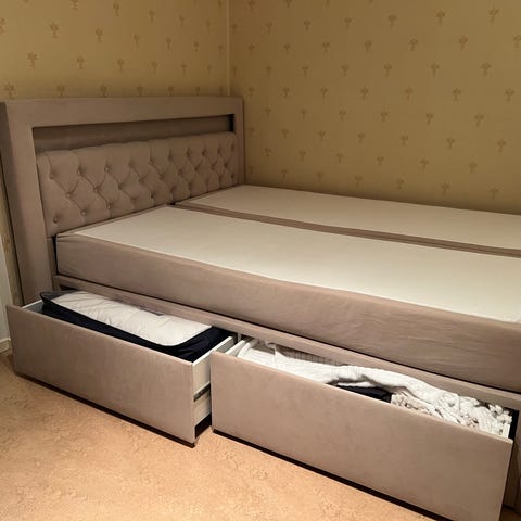 Riktigt skön säng från Bedly. Madrassen är medium fast.