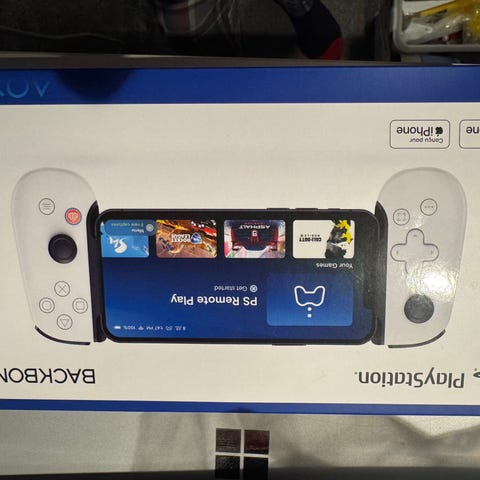 PlayStation Backbone One är en handkontroll designad för iPhone. Den är vit till färgen och möjliggör spelupplevelser via PS Remote Play och andra kompatibla spel. Kontrollen har ergonomisk design och knappar för spelkontroll.