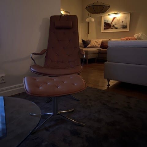 Fåtölj m fotpall, Hjort Knudsen