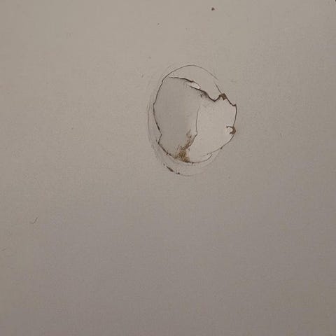 Målad vit så skulle behövas nytt lager med färg.