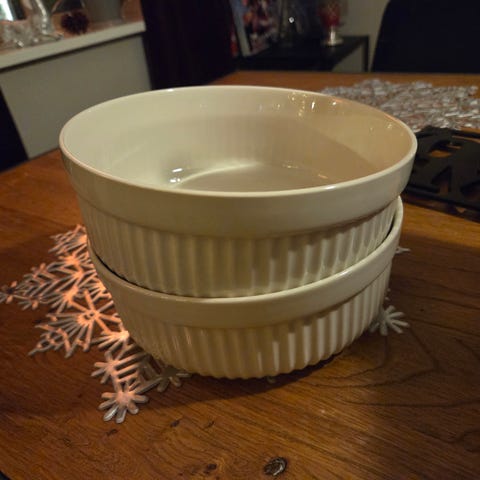 Säljer en ugnsform i vitt porslin med måtten 26 x 26 cm. Den är knappt använd så den är i väldigt gott skick.