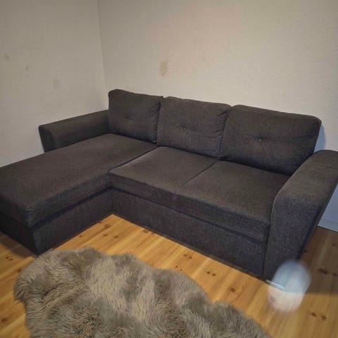3-sits soffa med tygklädsel. Soffan görs enkelt om till en säng. Sittdynor med pocketfjädrar och skumstoppning. Ryggdynor i skum. Med förvaring. Kan spegelvändas. Sovyta 149x195 cm. B241 x H86 x D89/163 cm
