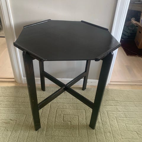 Laget i snickeri, och er unikt. Lite industriell stil. Jätte fint och praktiskt. Finns på Kungsholmen