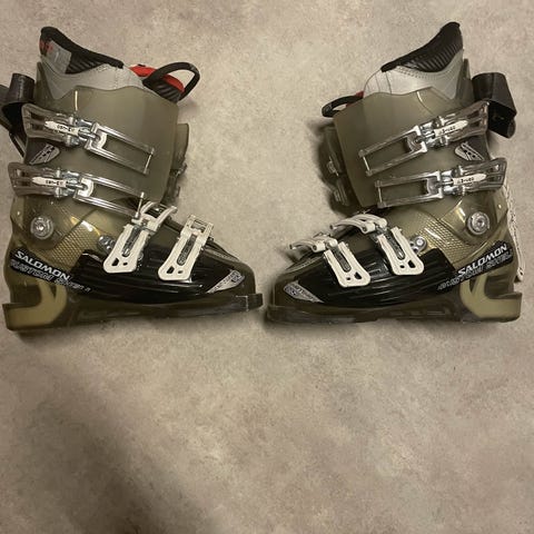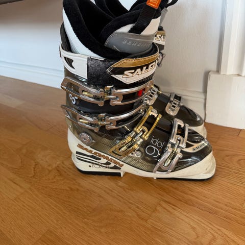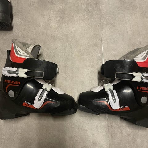 Tecnica skidpjäxor med storlek 270-275 mm. Skidpjäxorna är röda och vita. De är avsedda för användning vid skidåkning.