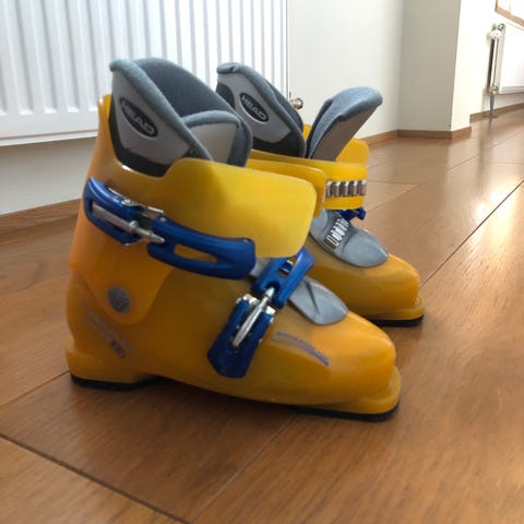 Firefly barnpjäxor i blått och svart med grönt spänne. Pjäxorna är anpassade för barn och har justerbara spännen för en säker passform.24-24.5--288mm