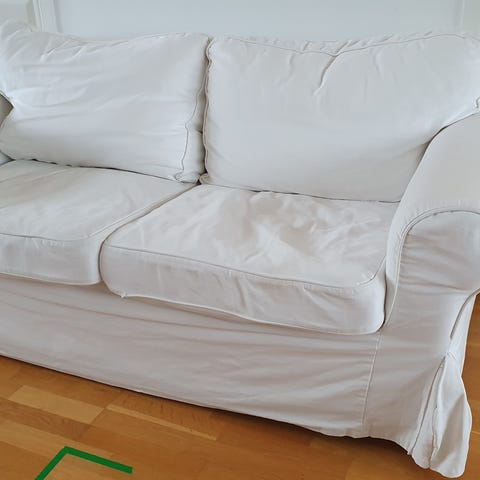 Nytvättade soffkläder och ej suttit i den sedan dess.