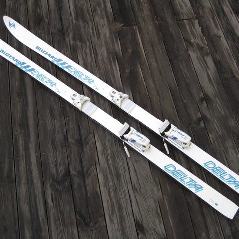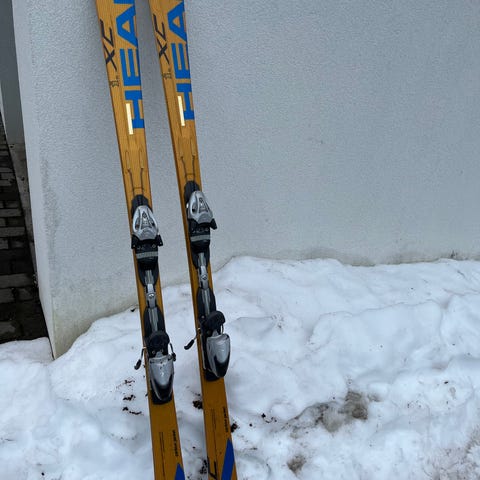 Riktiga slalomskidor med en längd på 158 cm som ger en riktigt bra carve med plattbindning ink stavar.