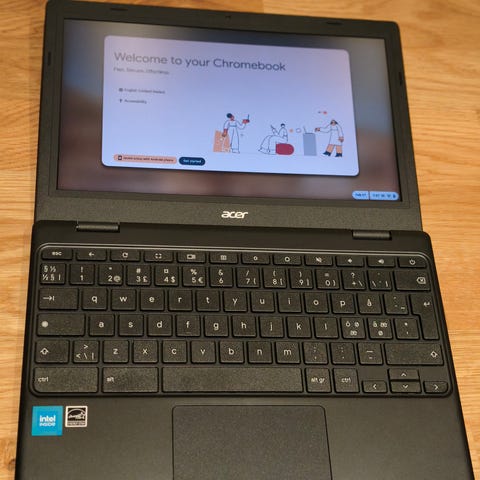 Acer Chromebook Plus 515 är en laptop med en 15,6-tums FHD-skärm. Den är utrustad med Wi-Fi 6 och har funktioner som lång batteritid och snabb prestanda. Laptopen är utformad för allmän användning och har en silverfärgad yta.