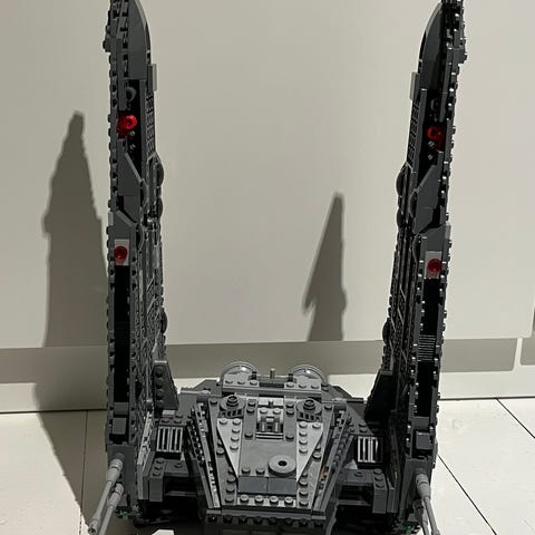 LEGO Star Wars rymdskepp i gul och grå färg inklusive en minifigur. Setet är byggbart med detaljer som cockpit och vingar, anpassat för samling eller lek. Modell 75214