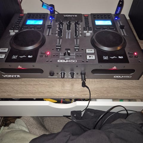DJ-kontroller/spelare som passar perfekt för nybörjare eller som en mindre hemmauppsättning. Allt är använt, men fortfarande i väldigt gott skick.