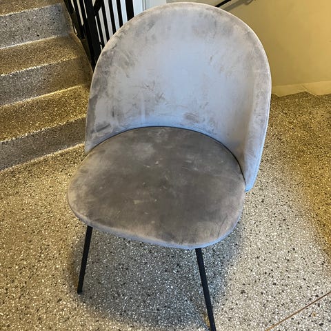 En av stolarna har en fläck (se bild) som jag inte vet vad det är. Kanske går bort om man anstränger sig lite. Syns knappt om man inte kollar ordentligt.