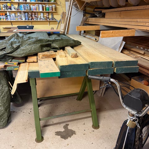 EK. En trave mestadels sekunda Ek men med kvistrena bitar allt inemellan . Var meningen till bastanta rustika bord samt epoxibord som hyvlas , slipas och blankpoleras vilket blir väldigt effektfullt. Några blev gjorda men nu räcker inte tiden till. Träet är möbeltorrt och går att arbetas med direkt . Kan kapas upp Pris för hela stuven = billigare än ved. 900:-