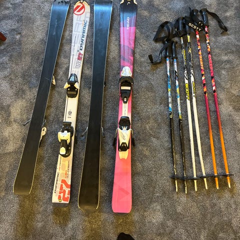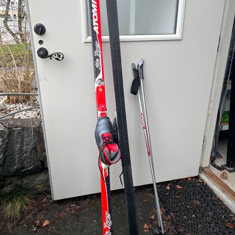 Dynafit Dynamic skidor med bindningar i vitt och rosa. Till skidorna medföljer Firefly pjäxor i blått. Storlek 180 mm. Skidor och pjäxor är avsedda för vintersport och skidåkning.