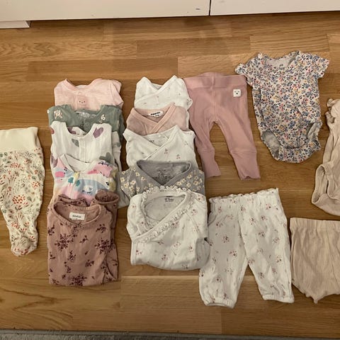 10 plagg varav 2 kortärmade bodys samt en pyjamas. Från Livly, Newbie, Kappahl, Lindex, Hm och Polarn och Pyret. Skickas och köparen betalar frakten:)