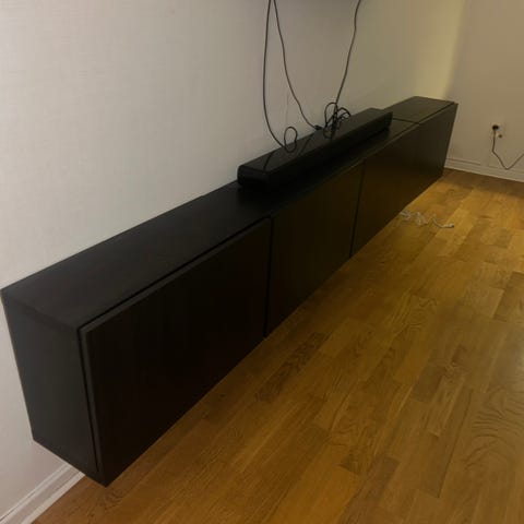 Två sektioner av Ikeas Bestå-serie med lappviken luckor. Sektionerna går att ha separata eller skruva ihop som en lång sektion.