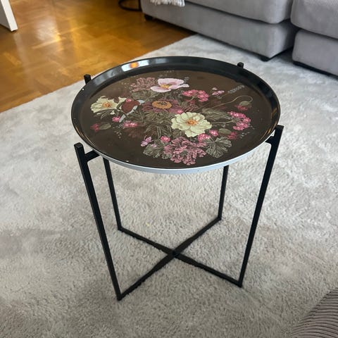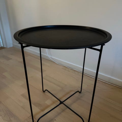 Nätt brickbord i svart metall, mycket lätt