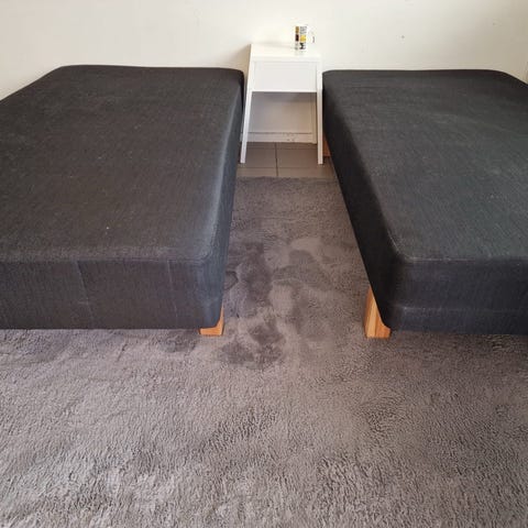 Säng 105 cm bred. Säljes med tillhörande bäddmadrass och extrasäng på hjul, perfekt för gäster. I mycket gott skick, sängen är från Home of ESS.