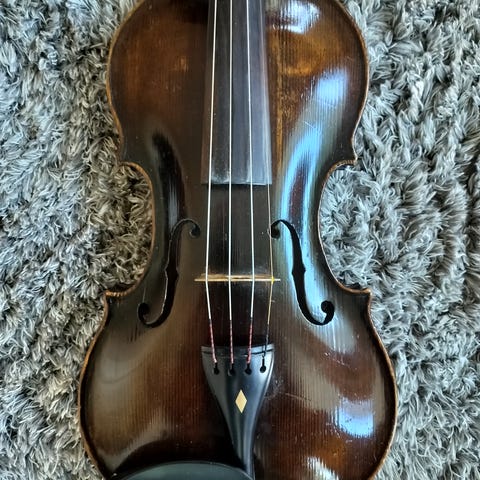 Äldre Antonius Stradivarius Cremonensis fiol tillverkad i Tjeckoslovakien. Fiolen är i mycket fint skick utan sprickor eller skador och ser knappt använd ut. Jag spelar inte själv fiol och kan därför inte bedöma ljudet, men instrumentet upplevs som helt och mycket välbevarat.