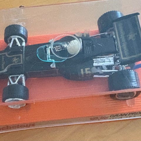 Vintage Marx Formel 1-leksaksbilar från Hong Kong. Bilarna är cirka 9 cm långa.