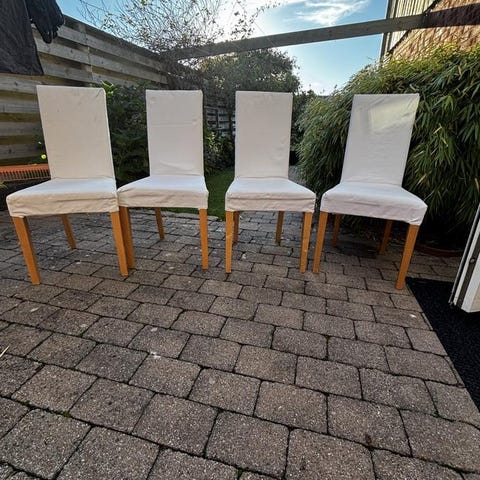 3 st trästolar. Går enkelt att klä om sitsen om så önskas.