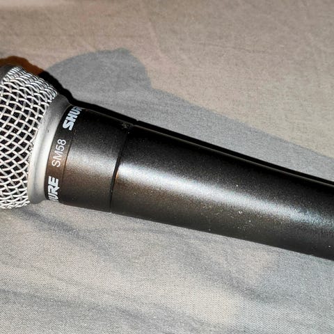 Shure SM58 är en dynamisk mikrofon. Den är utformad för professionell ljudupptagning och är vanligt förekommande vid liveframträdanden och inspelningar. Mikrofonen levereras med originalförpackning och tillbehör. Modell utan av- och påknapp. Nypris 1 200 kr. Knappt använd.