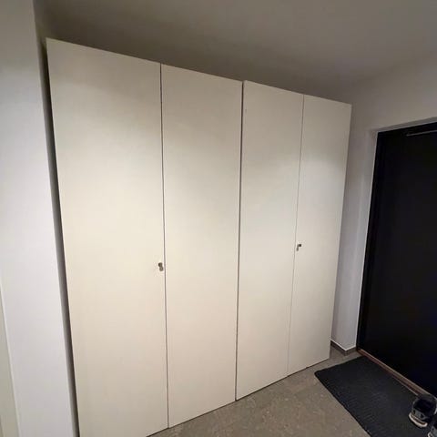 2st garderober (50 resp. 100 bred) förmodligen från IKEA. Invändig hyllinredning med klädhängare, hyllor, trådbackar. Skick enligt bilder. Måste troligen demonteras, i alla fall den breda.