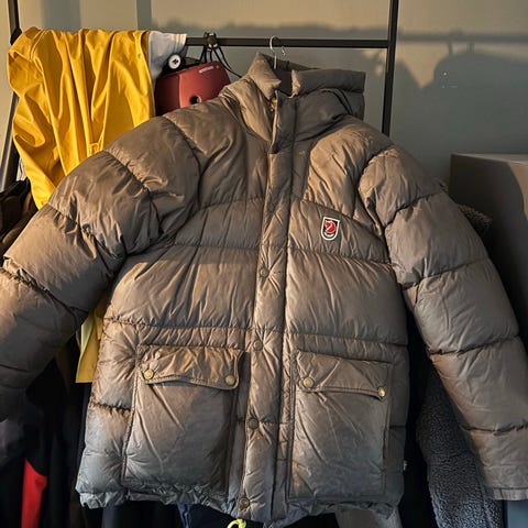 Fjällräven dunjacka i storlek S för dam. Jackan är grön och tillverkad av dunmaterial. Den är kategoriserad som övriga ytterkläder och är lämpad för utomhusbruk.