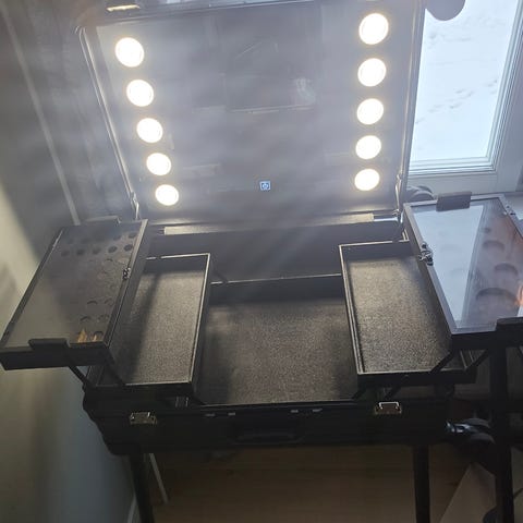 Säljer en smidig och stilren resväska som fungerar som sminkbord, perfekt för makeup-artister eller dig som vill ha en praktisk och snygg lösning hemma. Lätt att transportera och enkel att använda.