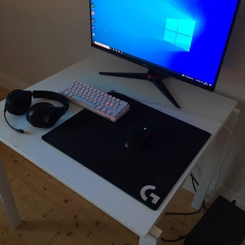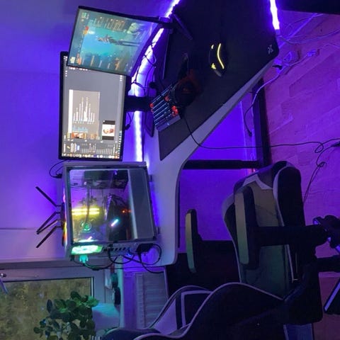 En gaming setup med egen byggd gaming dator plus 2 skärmar med båda över 144hz.