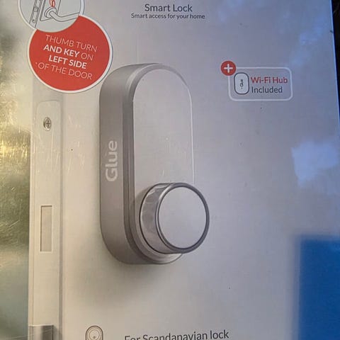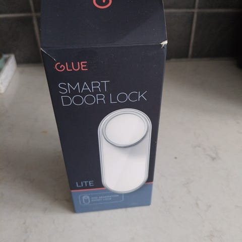 Glue Smart Lock är ett elektroniskt dörrlås i silverfärg. Produkten är utformad för att ersätta traditionella nycklar och kan styras via en app för ökad bekvämlighet och säkerhet. Den passar för användning i bostäder och kontor och är kompatibel med olika dörrtyper.