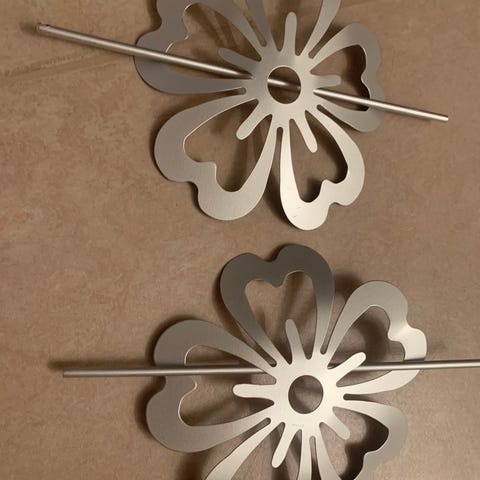 Två stycken oanvända dekorativa Gardinhållare i beige färg med inslag av fulda nyanser med utskurna mönster. Används för att hålla ihop gardinen och som dekorativa inslag.