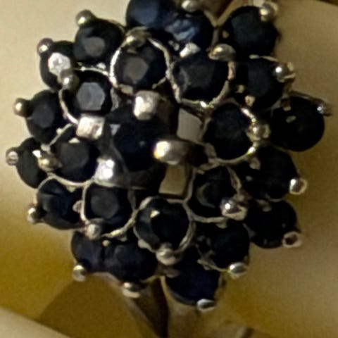 Äkta silverring med gnistrande markasiter och lila, vit och gröna ädelstenar