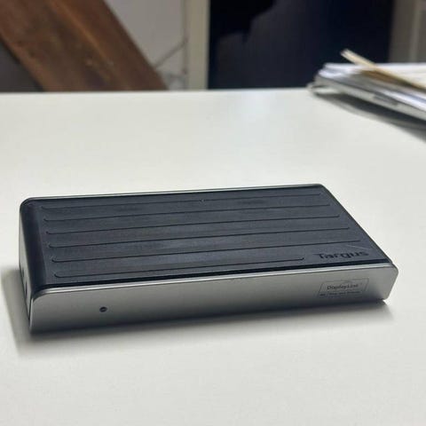 Dell Dockingstation med flera portar för anslutning av olika enheter. Enheten är svart och har portar för USB, Ethernet och videoanslutningar (HDMI) Anpassad för att användas med kompatibla Dell-datorer.