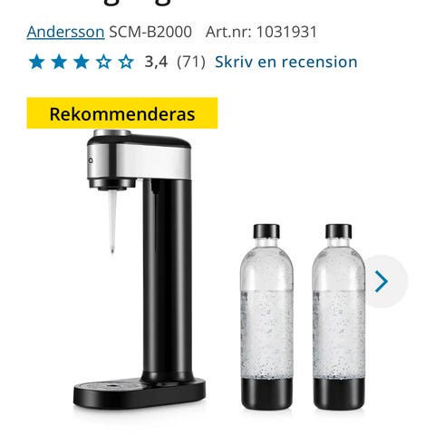 Andersson Sodastream-liknande kolsyremaskin svart + 2 flaskor