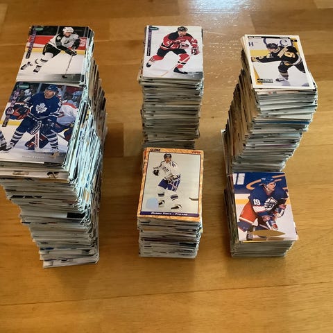 Säljer en större samling hockeykort om cirka 1100 kort.