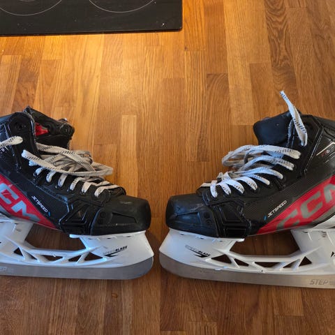 Säljer ett par ft4 pro skridskor som jag endast har använt en halv säsong. Det finns en defekt som är återgärdat och det är de man ser på en av bilderna. Det skedde av att jag använde dem för snabbt efter jag hade värmt dem. Men har använt dem i över 20 matcher utan några problem. Sitter på ett par Ls4 pulse skenor.